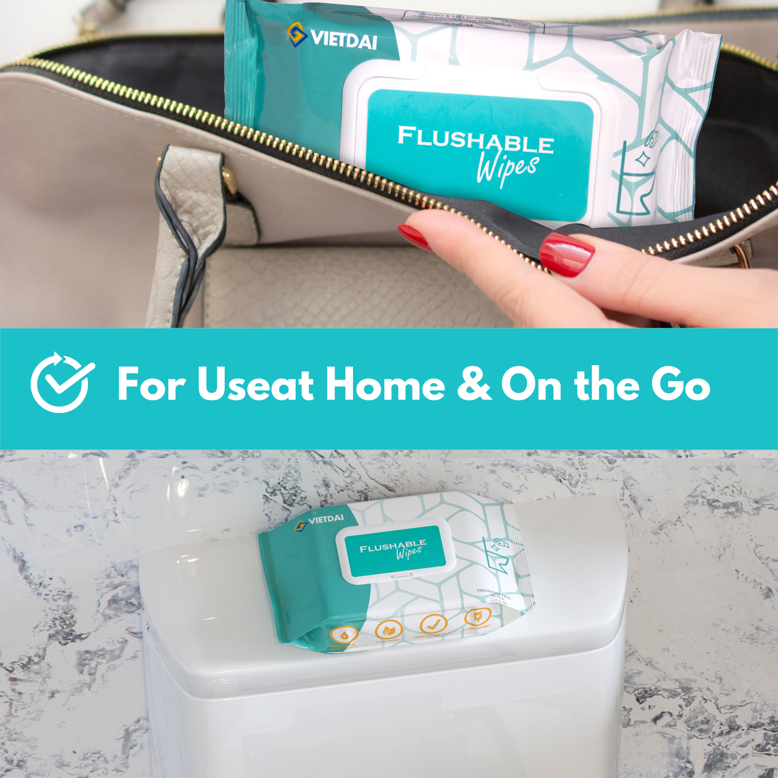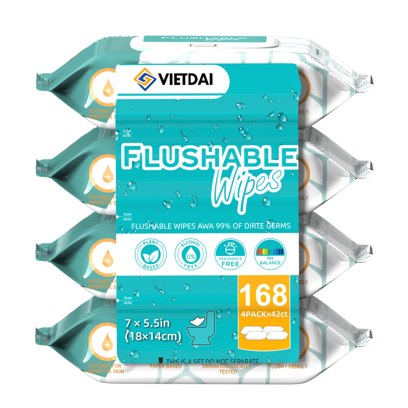 VIETDAI Wet Toilet Wipes are 100% flushable, with a corrugated texture and the cleansing power of water to provide long-lasting freshness. Specifically designed for toilets and tested by plumbers, so you can rest assured that they are safe for drains and septic tanks and begin to decompose immediately after flushing. Plus, they're plastic-free and made from 100% biodegradable fibers.