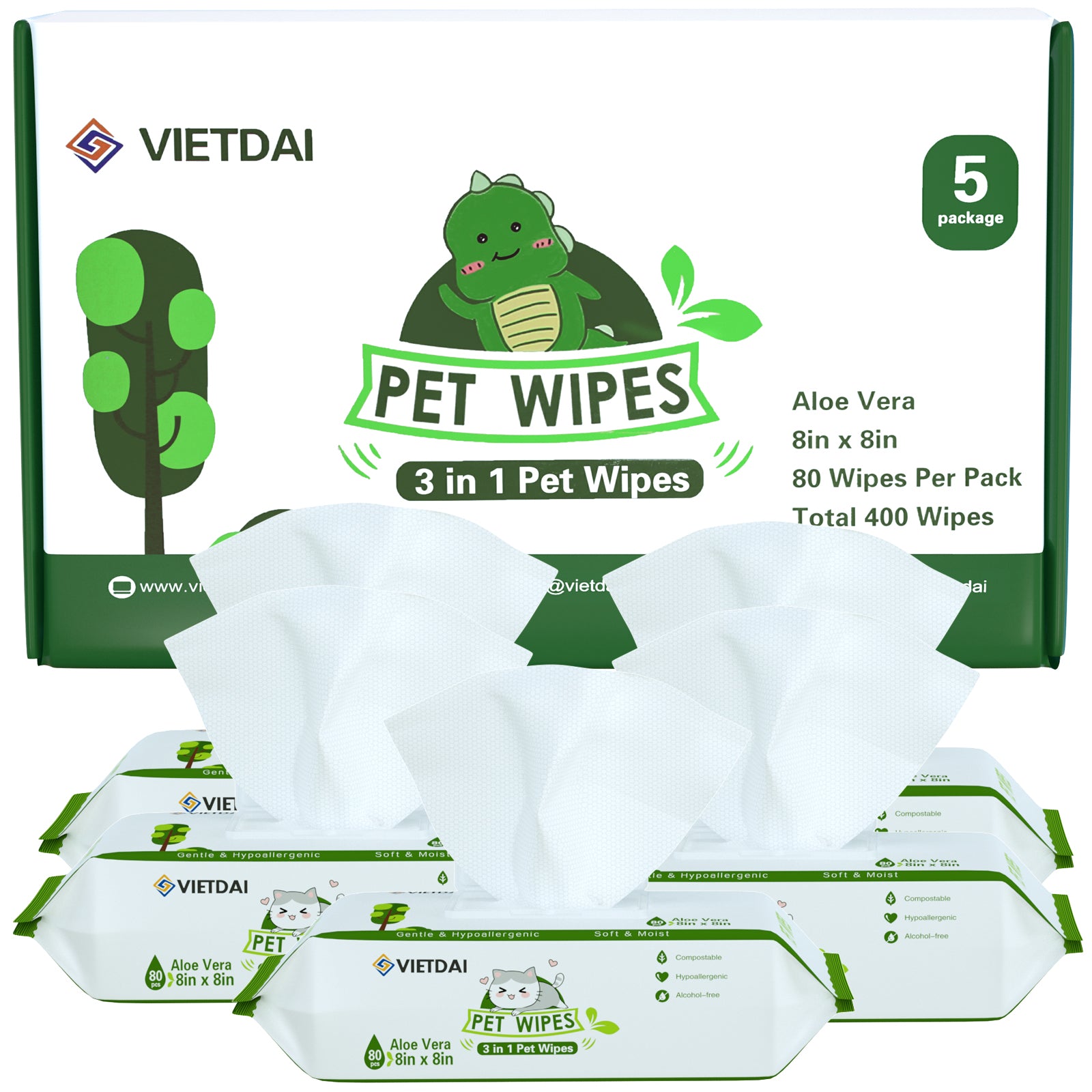 VIETDAI Pet Wipes - 5 Pack (400 tablets)